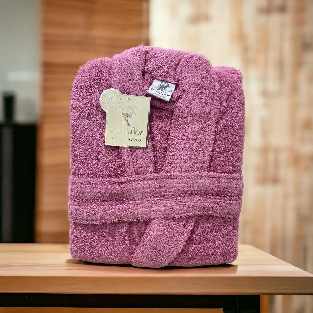 Albornoz color hortensia 100% algodón con la garantía de la marca Trovador. Con tejido de 400gr/m2 y tratamiento de alta absorción.