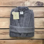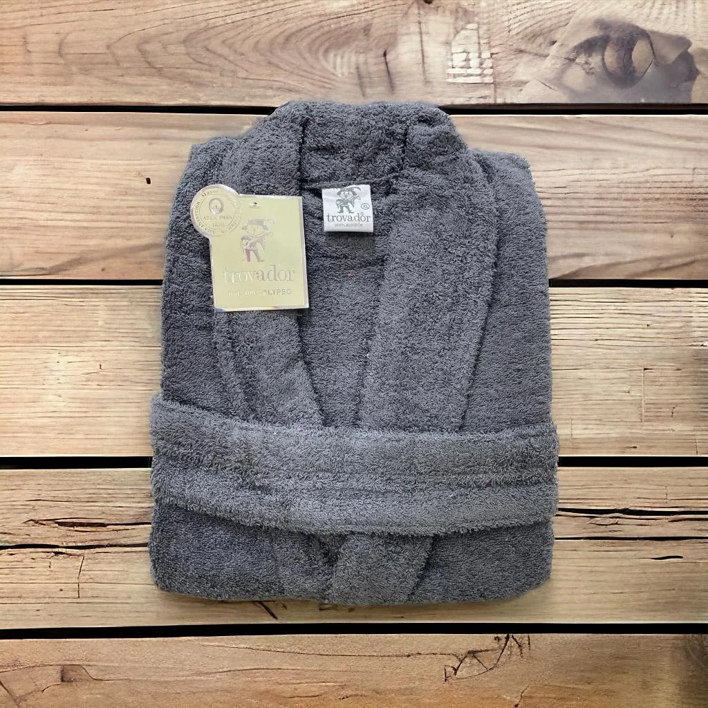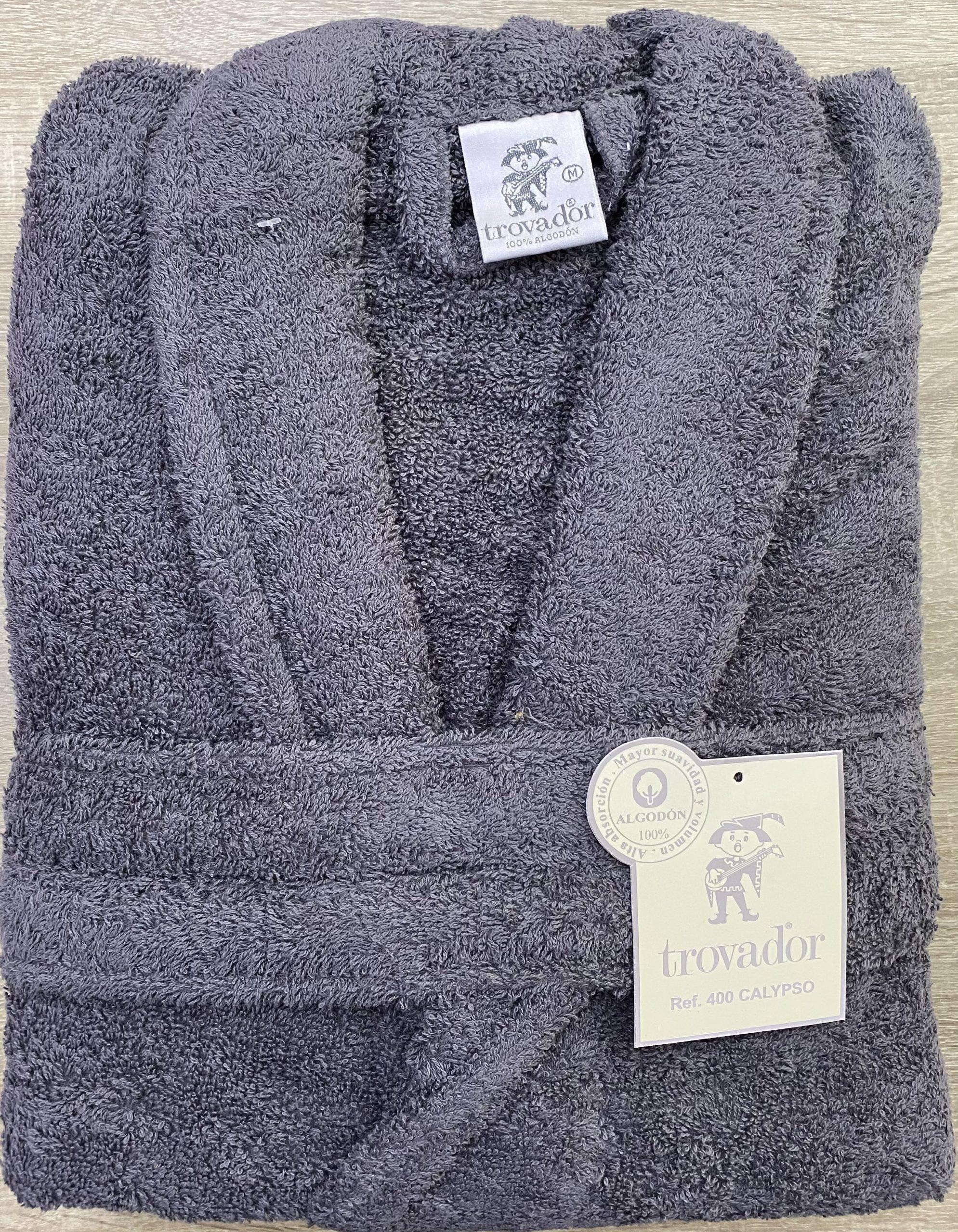 Albornoz baño color gris oscuro 100% algodón con la garantía de la marca Trovador. Con tejido de 400gr/m2 y tratamiento de alta absorción.