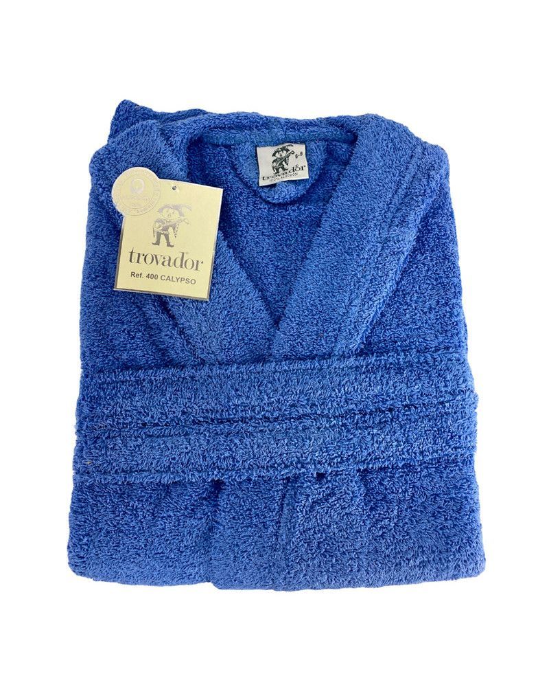 Albornoz 100% algodón con la garantía de la marca Trovador. Con tejido de 400gr/m2 y tratamiento de alta absorción.