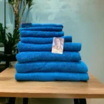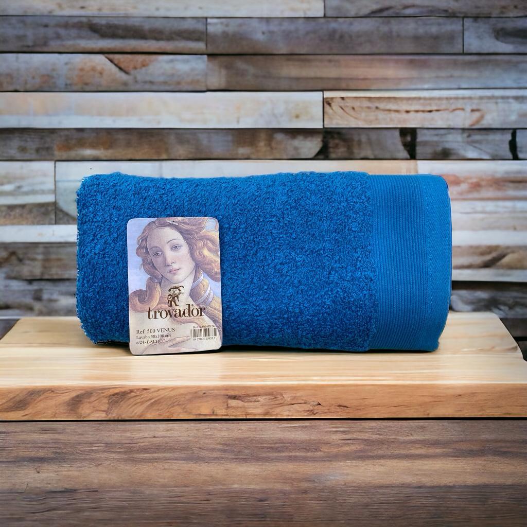 Toalla baño color azul báltico con la garantía de la marca de El Trovador 100% algodón de 500gr/m2 y tratamiento de alta absorción.