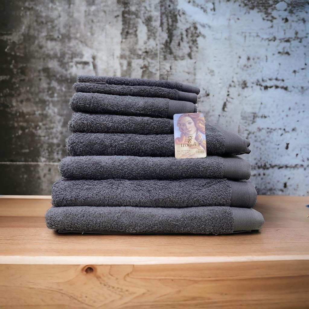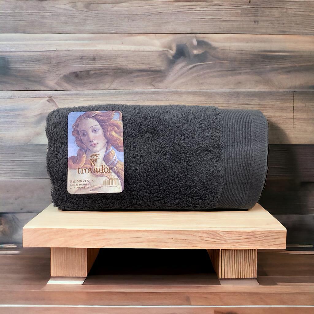 Toalla de baño color pizarra con la garantía de la marca de El Trovador 100% algodón de 500gr/m2 y tratamiento de alta absorción.