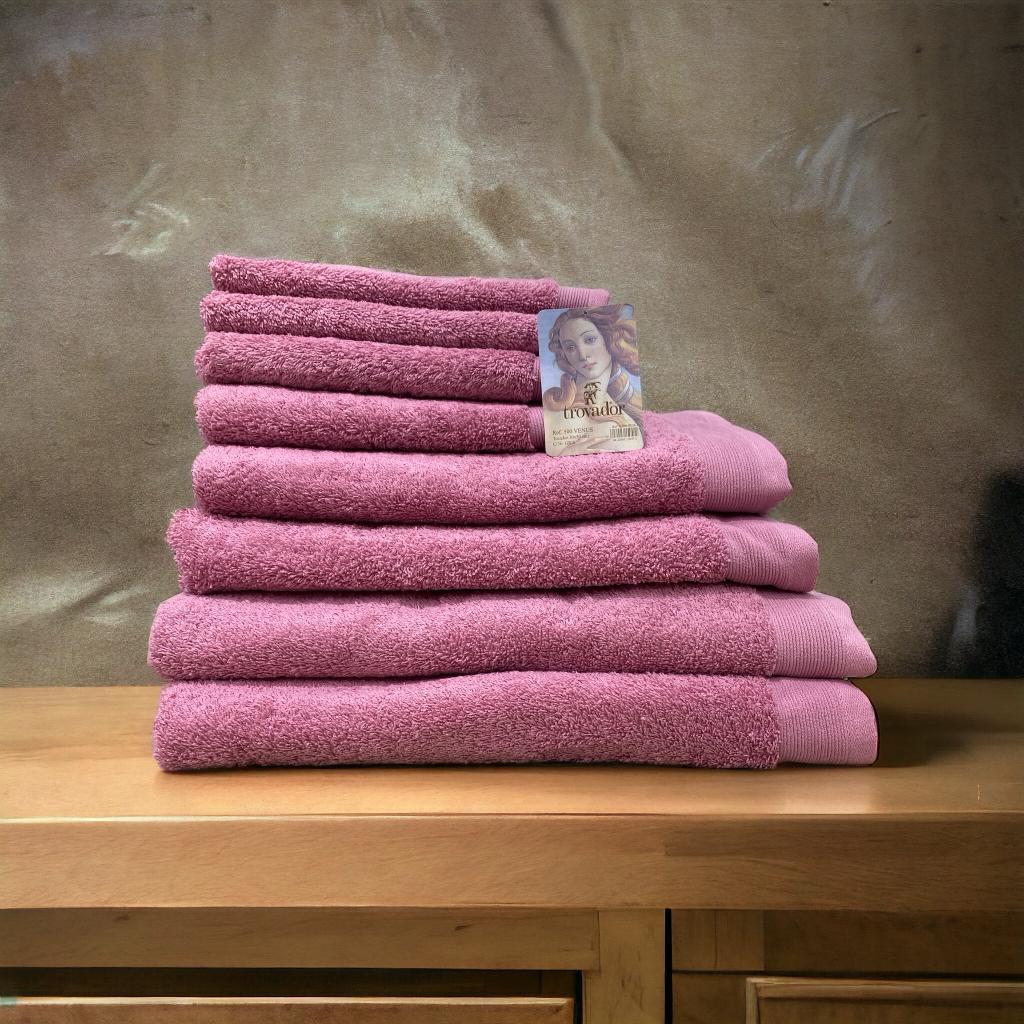 Toalla baño color rosa con la garantía de la marca de El Trovador 100% algodón de 500gr/m2 y tratamiento de alta absorción.