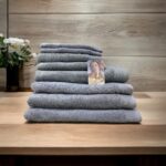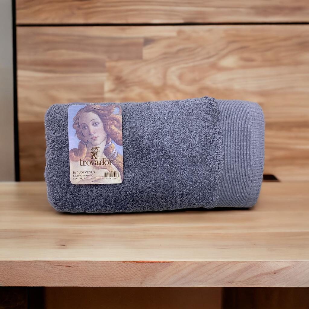 Toalla baño color gris claro con la garantía de la marca de El Trovador 100% algodón de 500gr/m2 y tratamiento de alta absorción.